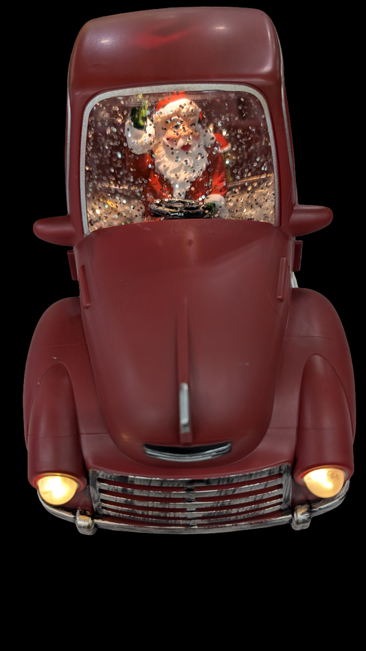 8.75"H Lighted Spinning Water Globe Red Truck w/Santa