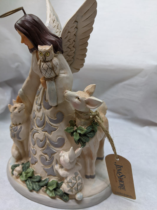Jim Shore White Woodland Pint Size Angel - Beautiful Peace