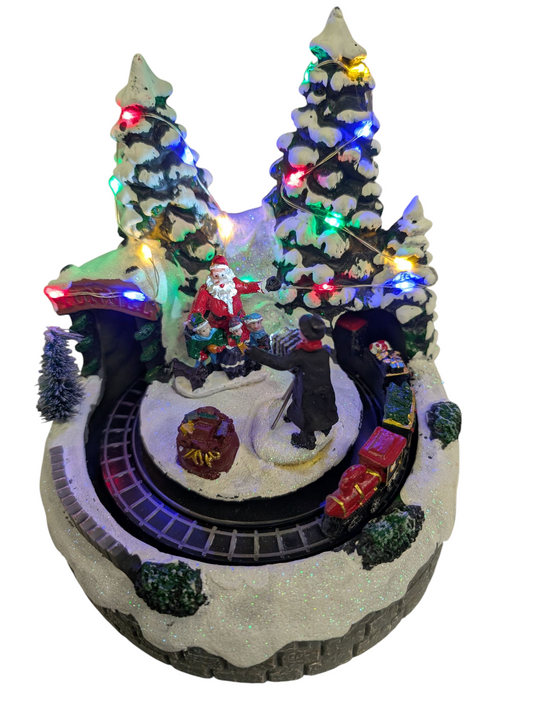 Lighted Christmas Musical Village with Moving Train – 7.5"