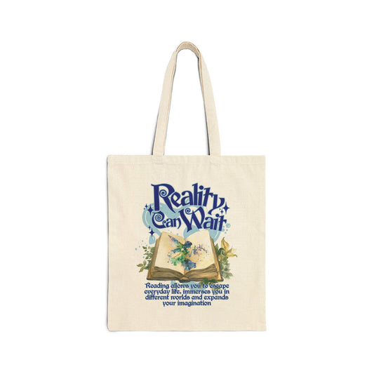 Reality Can Wait Blue Design Literary Tote Bag - Perfect for Book Lovers