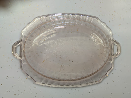 Mayfair Open Rose Pink Depression Glass Oval Serving Bowl
