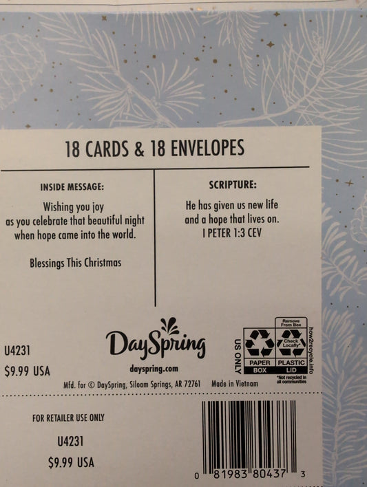 We carry a large selection of Dayspring Boxed Christmas Cards. This collection is just a few of our choices. -35% OFF - DISCOUNT GIVEN AT CHECKOUT!