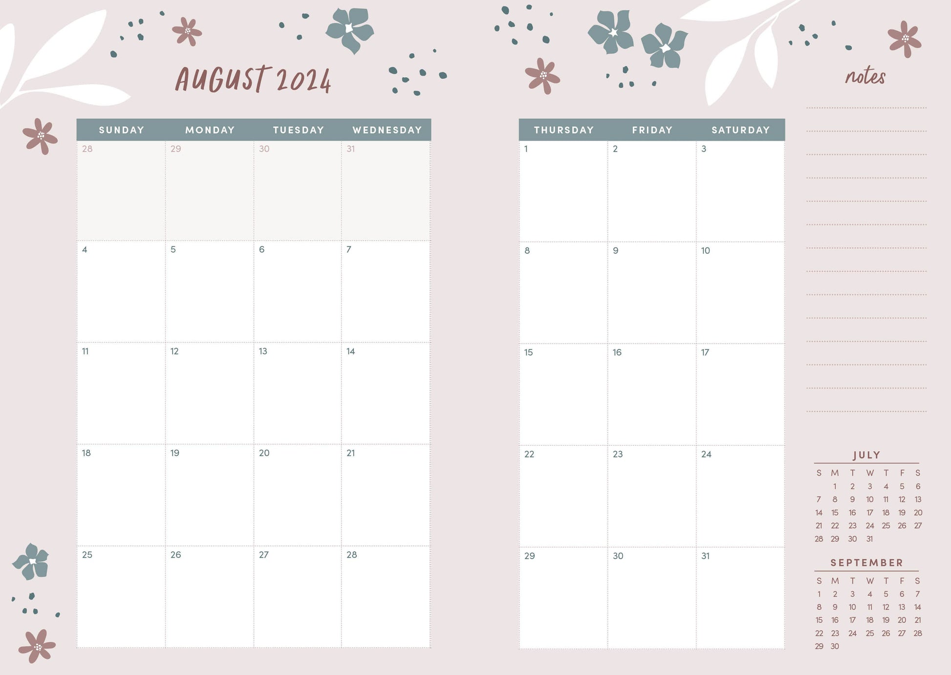 Monthly & Weekly Calendars, To-Do Lists & Goal-Setting Sections