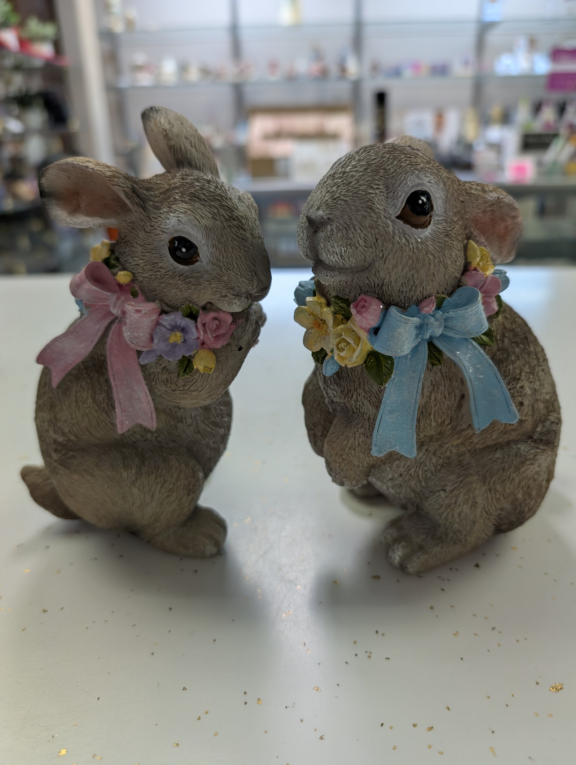 Adorable Resin Bunny with Floral and Big Bow 6.3"
