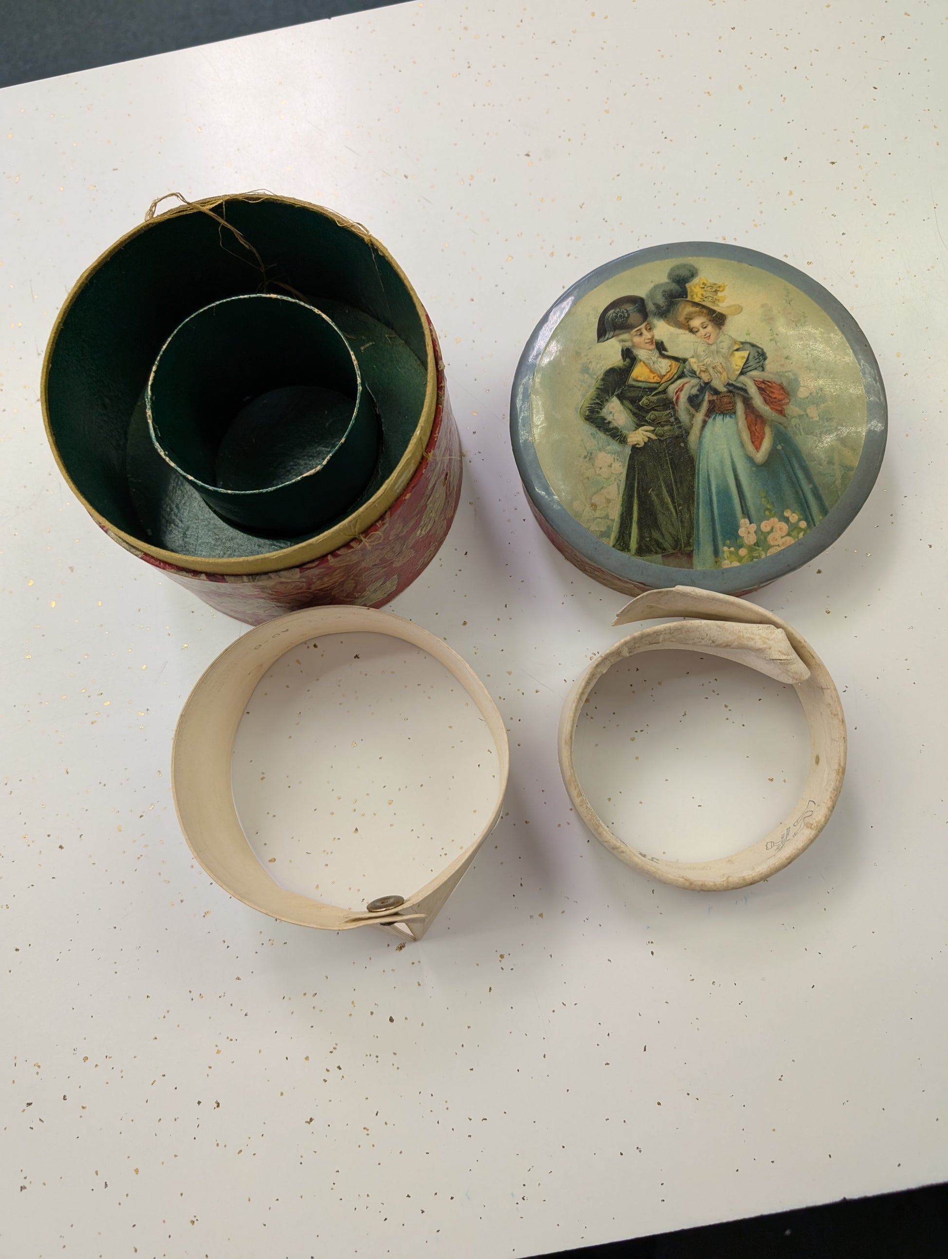 Antique 1900s Celluloid Collar Stay Box with Collars