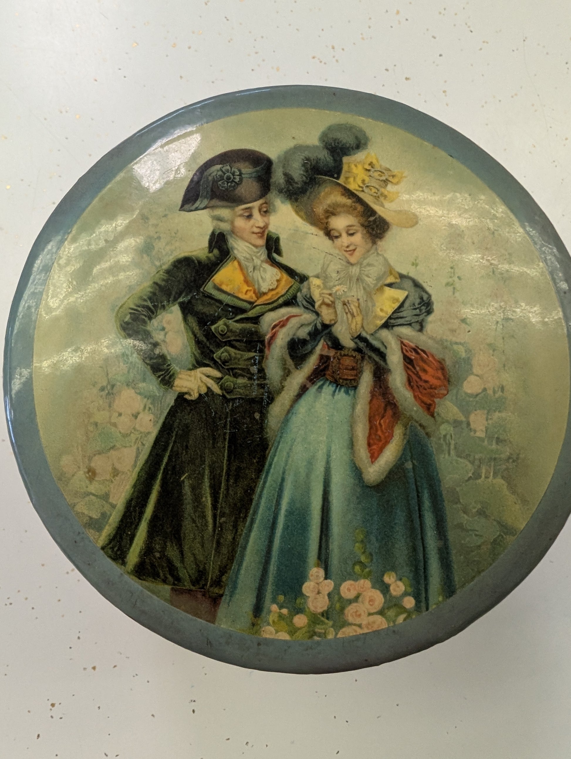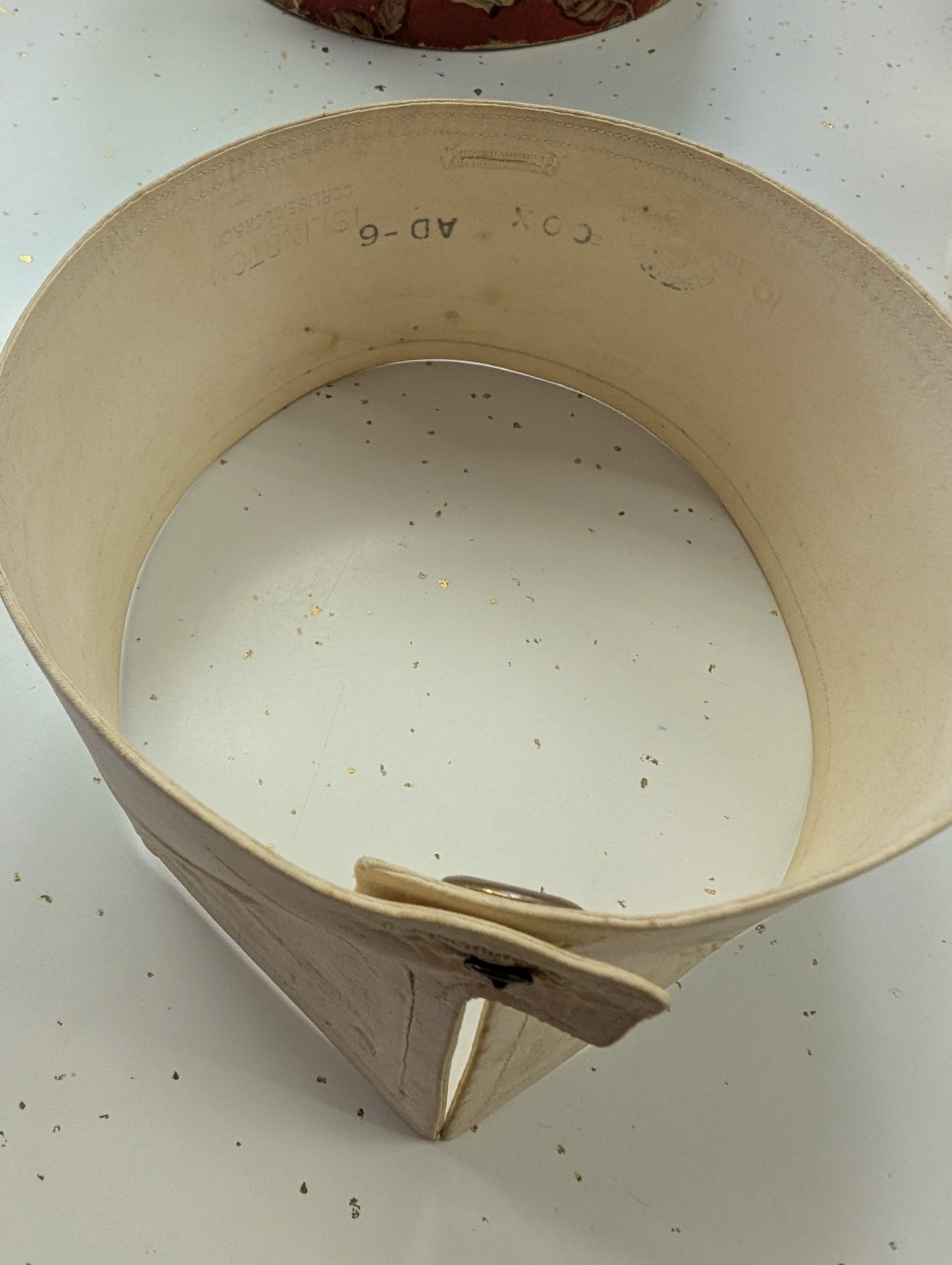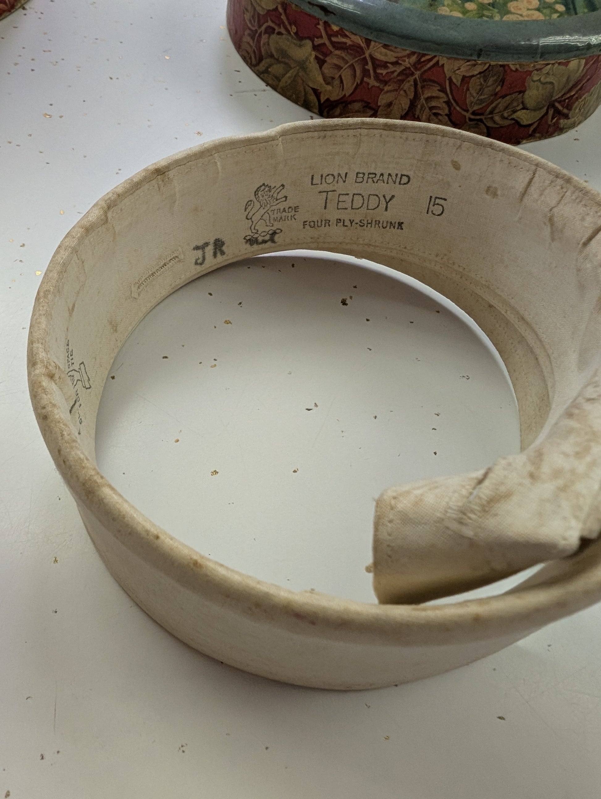 Antique Celluloid Collar Stay Box with one Vintage Lion Brand Saxonia Collar with collar stay pin, and a smaller collar with a stamp I can not make out. The price markings on the bottom seem to be from Europe, possible France.
