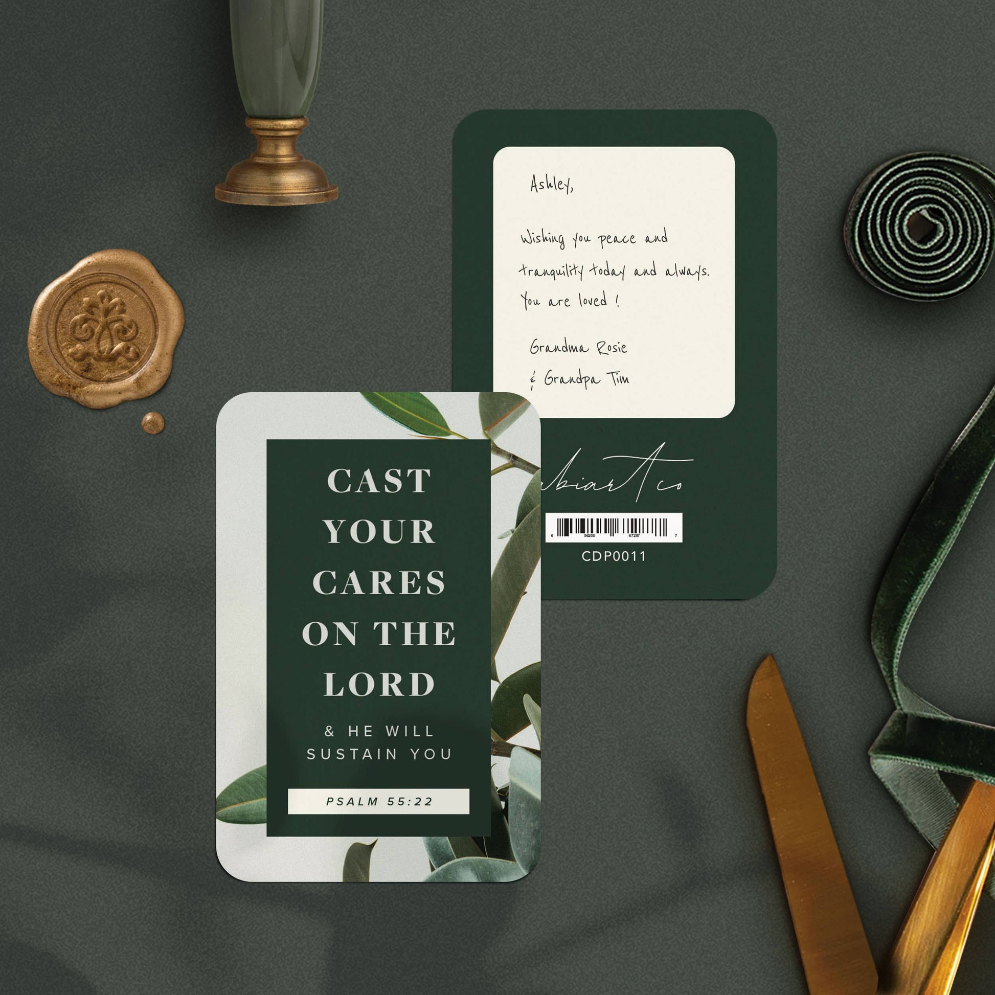 Designed and printed in the heart of Amish Country, Care Cards are high quality, soft touch paper cards designed with sentiment on front and a blank text box on back for writing a note to the recipient. Features rounded corners and full-color printing on front and back.   Diameter: 0