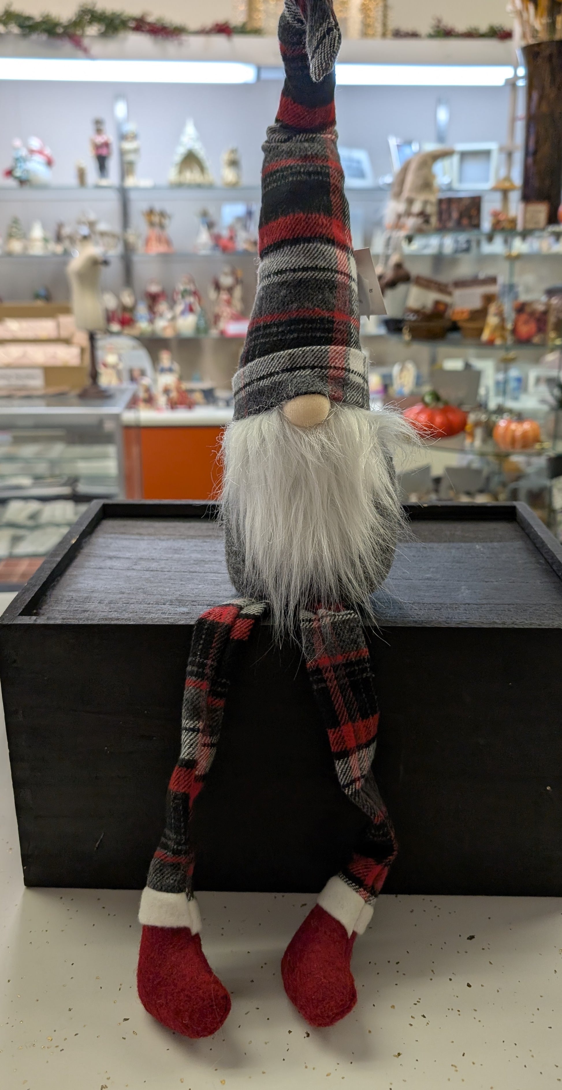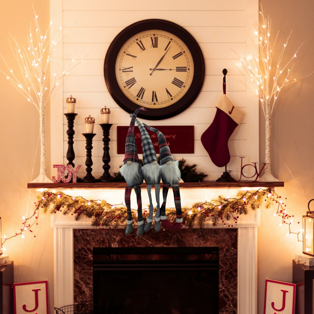 Fabric Holiday Plaid Shelf Sitter Gnomes – 25.9” with Dangle Legs