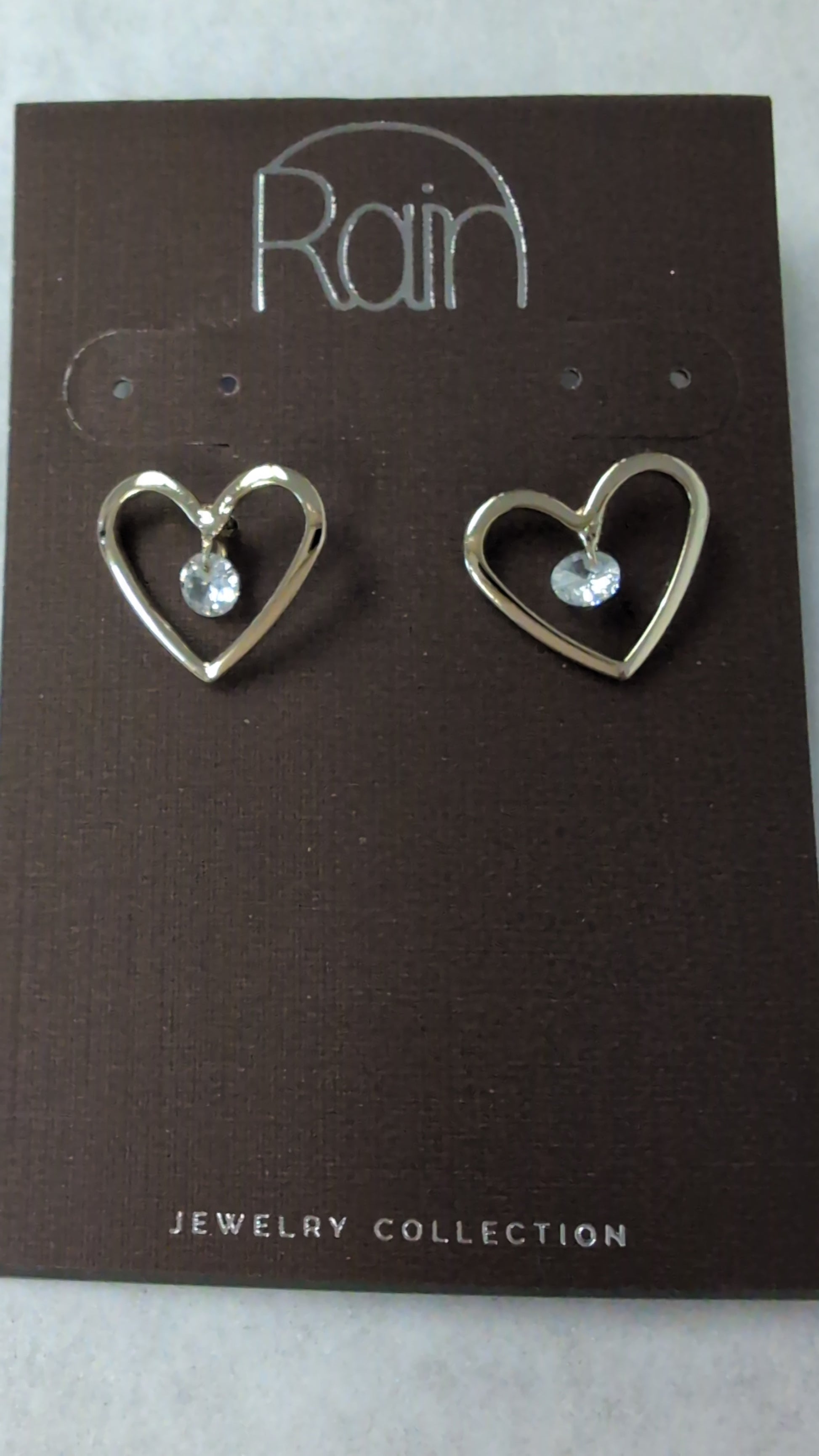 Gold Brass Heart with Cubic Zirconia stud earrings