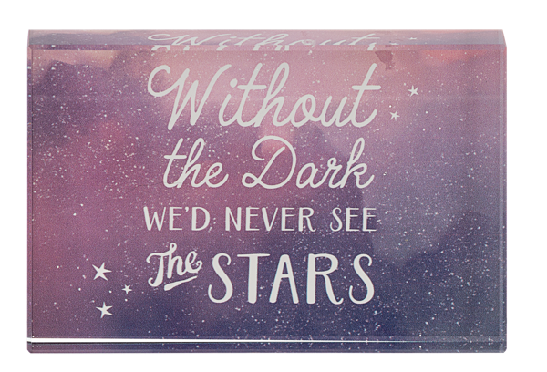 Bring inspiration to any space with this elegant glass Block Talk shelf sitter by Ganz. Designed to uplift, each block features meaningful sentiment beautifully displayed on clear glass — perfect for desks, shelves, mantels, and gift baskets.