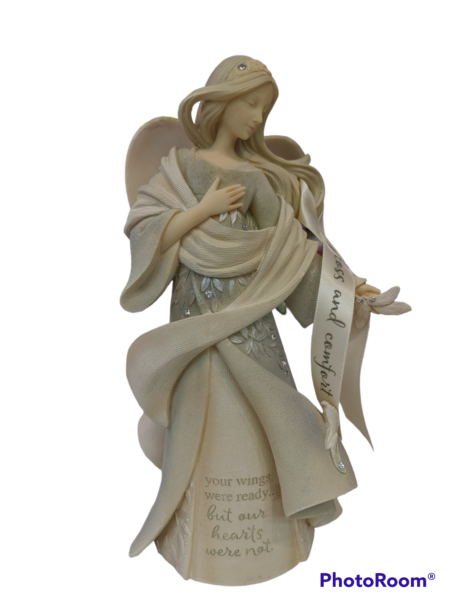 Part of the Foundations Collection, this beautiful Angel stands approximately 8” high. Inscribed with “Your wings were ready, but our hearts were not”;and accented with a ribbon with “loss and comfort”.